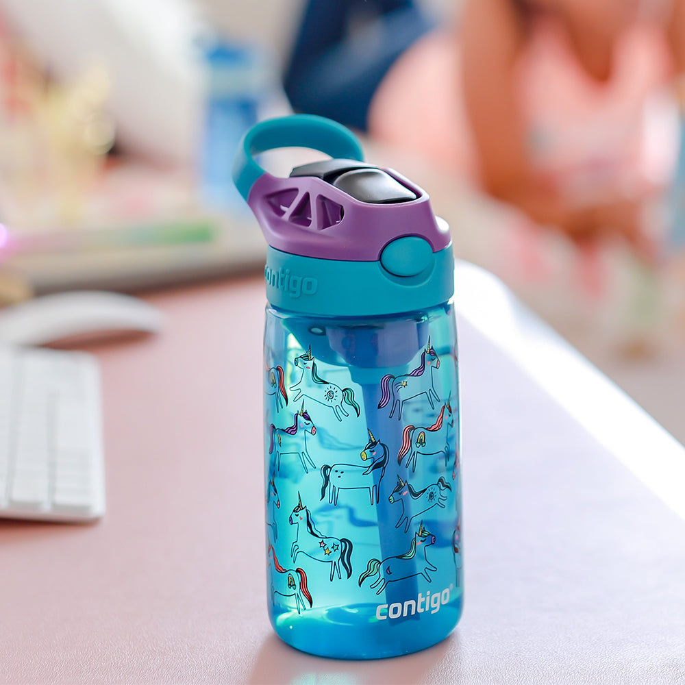 Bottles leaking in school bags or spilling onto car seats: now they're problems of the past. Fitted with a pop-up straw, the AUTOSPOUT™ Easy Clean bottle is designed for kids' adventures... and saving the grown-ups' sanity. It's easy to see why the AUTOSPOUT™ Easy Clean bottle has won a place in school bags all over the world. Kids delight in pressing the button to open the pop-up straw for effortless, one-handed drinking, and the spout can be pushed under the cover to protect from dirt and grime. The spill-proof valve means there are no spills, even when the bottle is upside down. What about the cleaning? Good news: the cleverly designed spout eliminates all nooks and crannies in which dirt and grime might accumulate and the lid can be easily disassembled for full access cleaning. All parts are top rack dishwasher safe. Contigo Kids Easy Clean is BPA-free and odor-resistant. For children aged 3 and up.