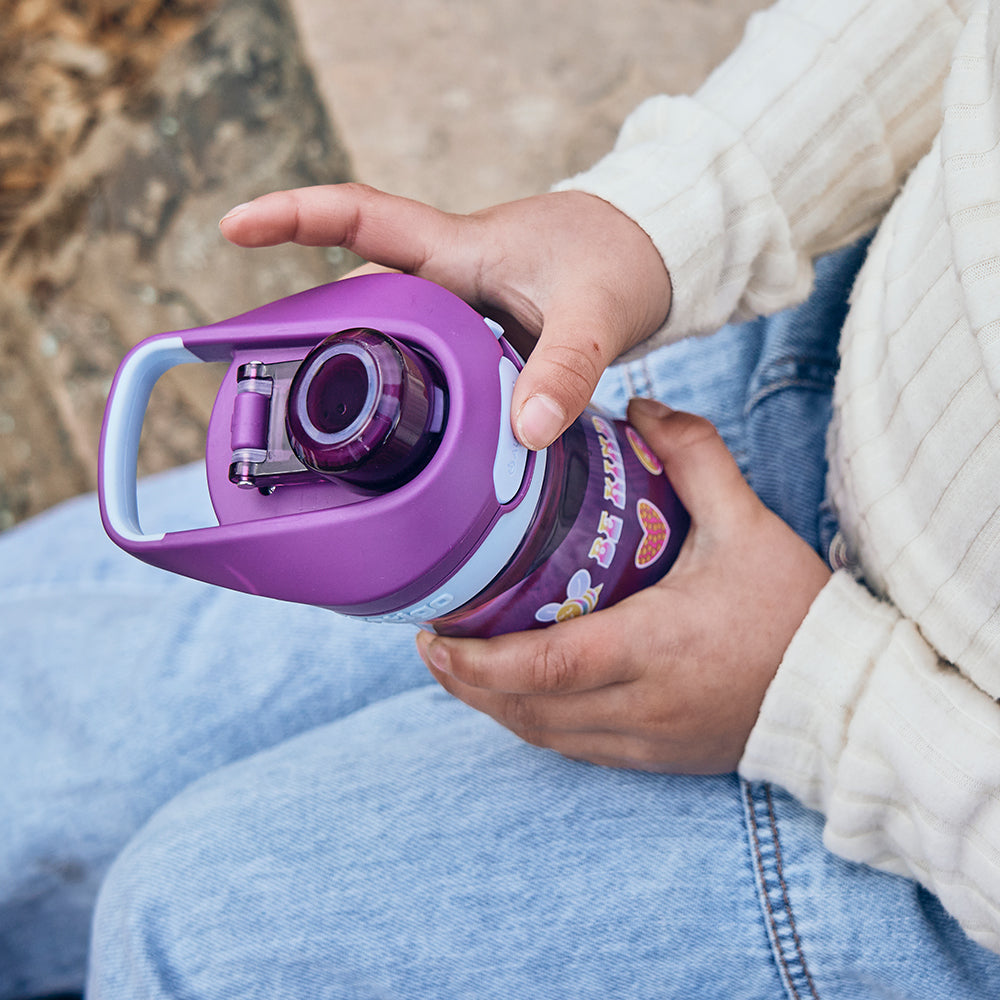 Open, lock, love! The Jessie water bottle is ideal for kids who have already given up on straw bottles and are ready for a bottle with a wider opening. It has fun colors and features that kids love, as well as a tight, easy-to-clean, and dishwasher-safe construction that busy parents also appreciate.